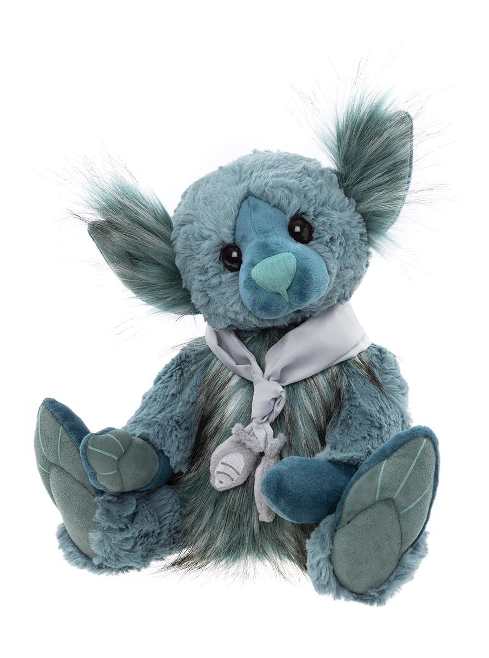 Water Elf adds a touch of whimsy to any room. This mythological elf is crafted from exquisitely soft turquoise plush in varying pile lengths, giving her a rich texture and visual depth.